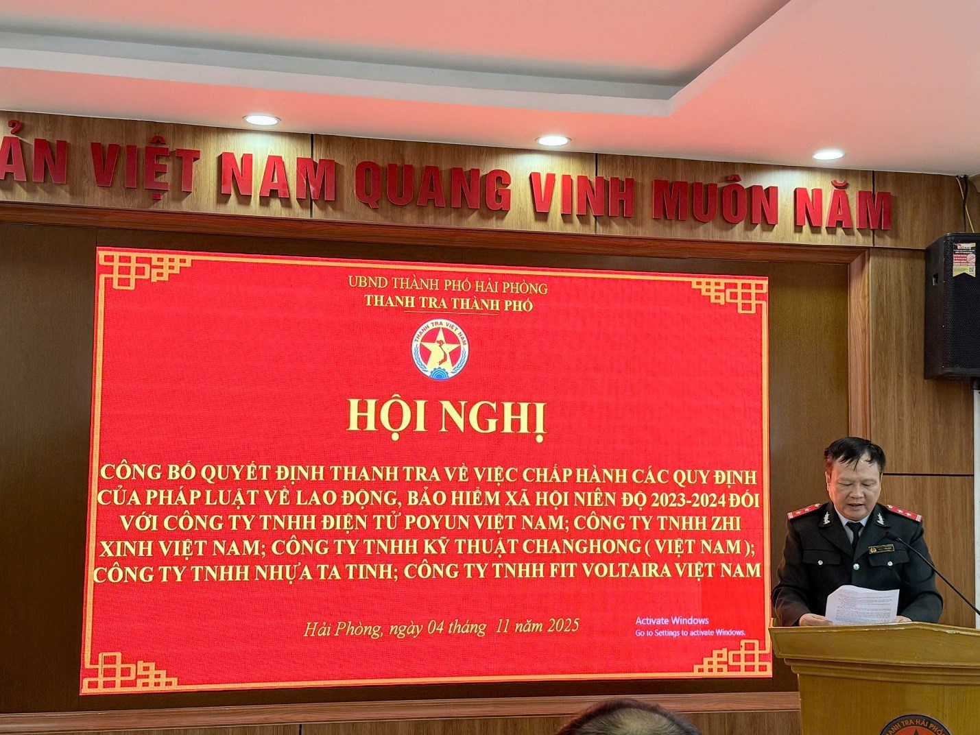 Sáng ngày 04 tháng 11 năm 2025, tại trụ sở Thanh tra thành phố, Đoàn Thanh tra theo Quyết định số 872/QĐ-TTTP ngày 27/10/2025 của Chánh Thanh tra thành phố tiến hành công bố Quyết định thanh tra việc chấp hành các quy định của pháp luật về lao động, bảo hiểm xã hội niên độ năm 2023 – 2024.