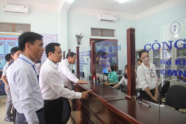 Phó Chủ tịch UBND thành phố Nguyễn Văn Thành kiểm tra tại Bộ phận Một cửa UBND xã Thủy Sơn, huyện Thủy Nguyên