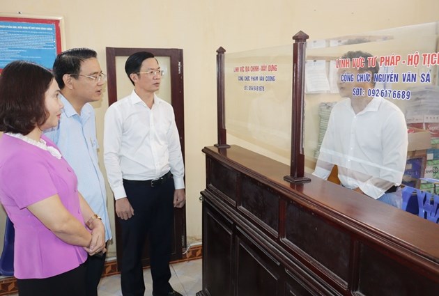 Chủ tịch HĐND thành phố Phạm Văn Lập cùng đoàn giám sát kiểm tra thực tế tại bộ phận “Một cửa” UBND thị trấn Tiên Lãng.
