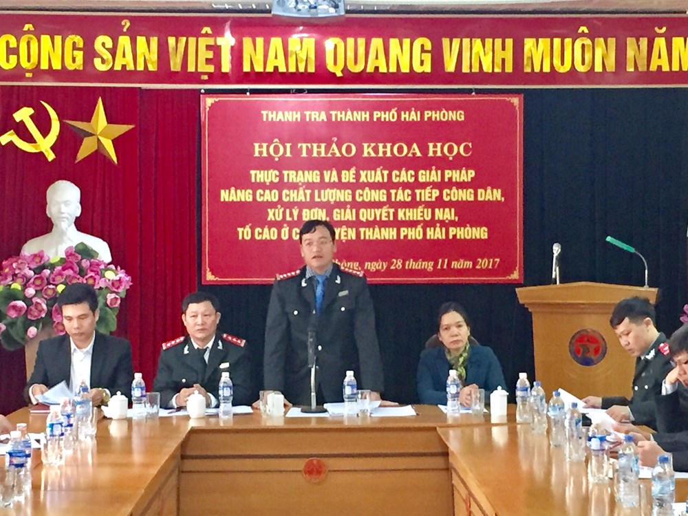 (Thanh tra) - Sáng nay (28/11), Thanh tra TP Hải Phòng tổ chức hội thảo lần thứ 4 về thực trạng và đề xuất các giải pháp nâng cao chất lượng công tác tiếp công dân, xử lý đơn, giải quyết khiếu nại, tố cáo ở cấp huyện.