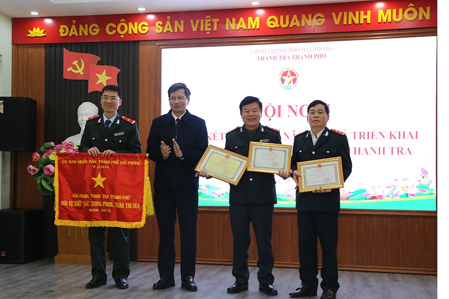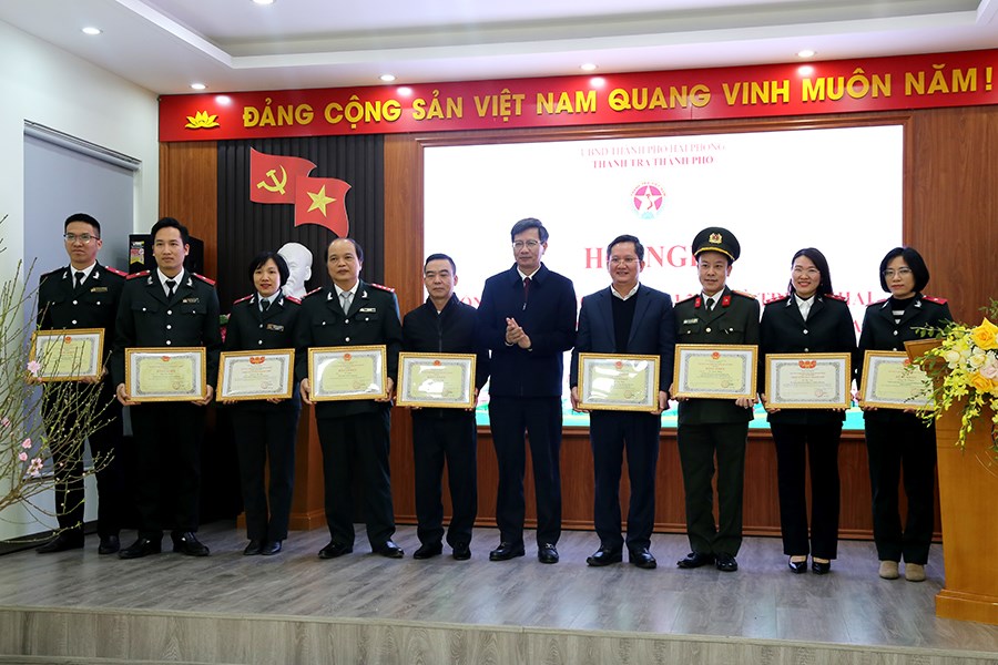 Nhân dịp này, tập thể Văn phòng Thanh tra thành phố được nhận Cờ thi đua của UBND thành phố; 03 tập thể được nhận Danh hiệu “Tập thể lao động xuất sắc”; 01 tập thể và 5 cá nhân được nhận Bằng khen của UBND thành phố; 15 tập thể và 25 cá nhân được nhận Giấy khen của UBND thành phố.
