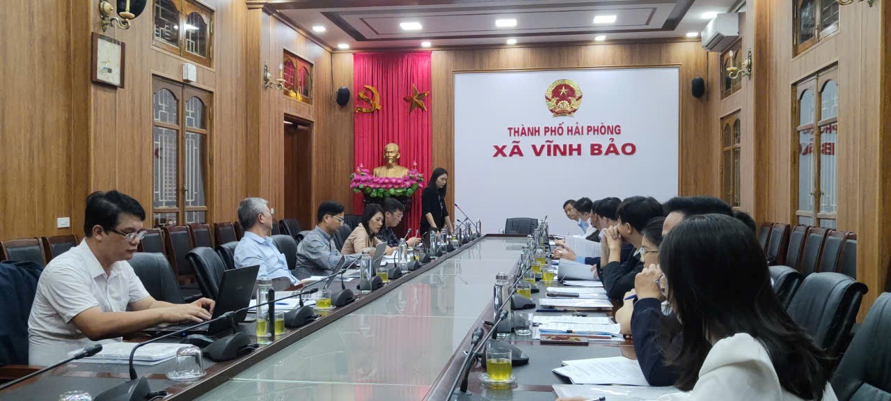 Đoàn kiểm tra làm việc với các đơn vị liên quan tại trụ sở UBND xã Vĩnh Bảo.