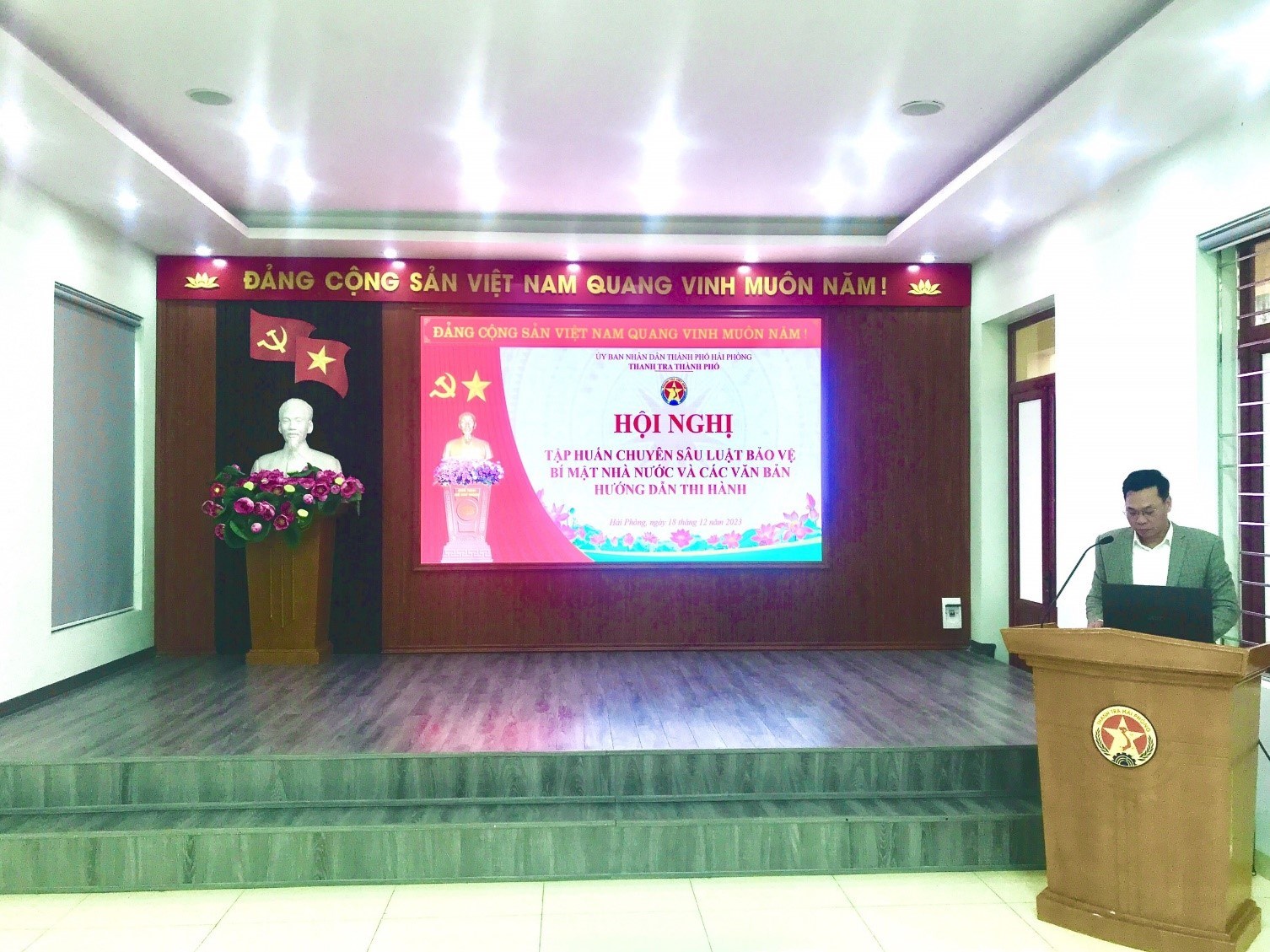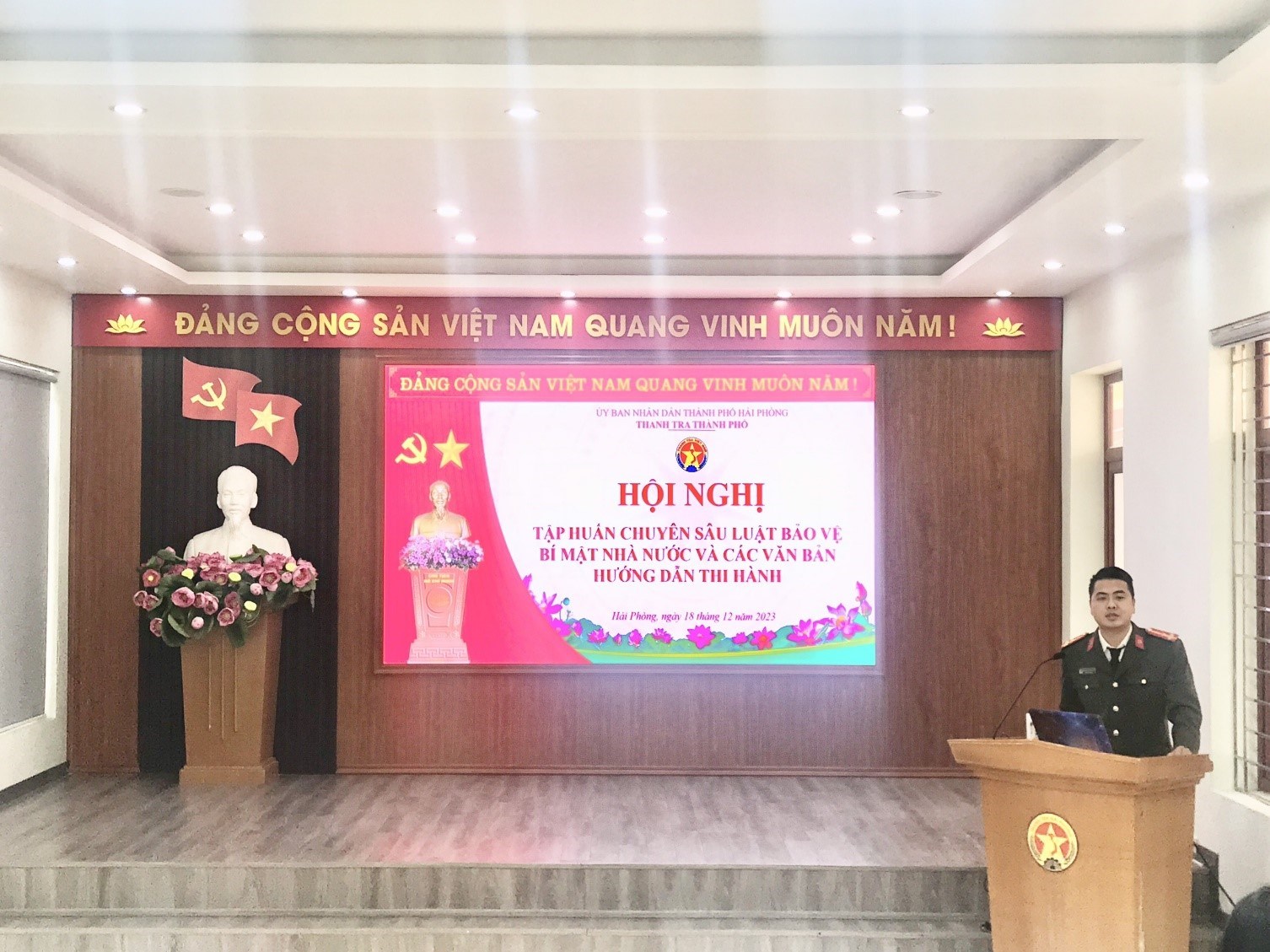 Tại Hội nghị, đồng chí Nguyễn Đăng Minh, Thượng úy phòng An ninh chính trị nội bộ, Công an thành phố, đã triển khai tập huấn chuyên sâu Luật Bảo vệ bí mật nhà nước và các văn bản hướng dẫn thi hành, nhằm hạn chế các nguy cơ lộ, mất bí mật nhà nước, từ đó nâng cao hiệu quả công tác bảo vệ bí mật nhà nước của cán bộ, công chức trong cơ quan.