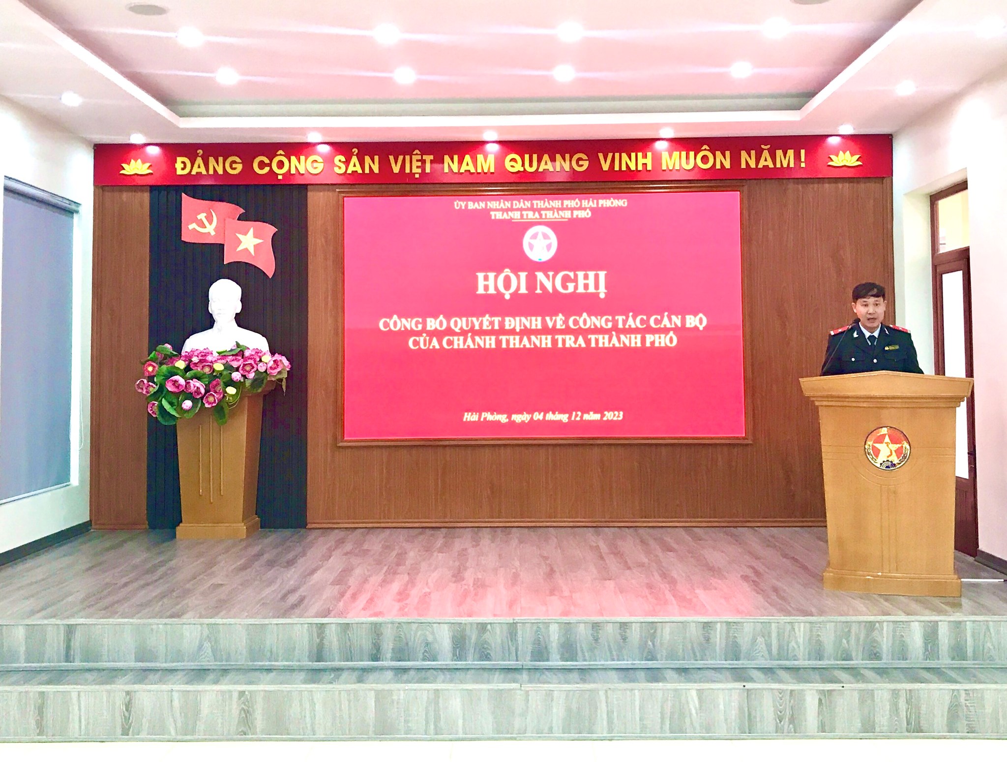 Theo Quyết định số 388/QĐ-UBND ngày 29/11/2023 của Chánh Thanh tra thành phố, bổ nhiệm ông Đoàn Ngọc Thưởng, Phó Trưởng phòng, Phòng Thanh tra, giải quyết khiếu nại, tố cáo số 3 giữ chức vụ Chánh Văn phòng Thanh tra thành phố, thời hạn bổ nhiệm là 5 năm kể từ ngày 01/12/2023. Đồng thời, điều động, bổ nhiệm bà Trương Thị Nhàn, Phó Trưởng phòng, Phòng Thanh tra, giải quyết khiếu nại tố cáo số 1 giữ chức vụ Phó Trưởng phòng, Phòng Thanh tra, giải quyết khiếu nại tố cáo số 3; Cùng ngày, Đảng ủy cơ quan Thanh tra thành phố công bố quyết định chỉ định ông Lê Văn Sở giữ chức vụ Bí thư chi bộ Phòng Thanh tra giải quyết khiếu nại tố cáo số 3.