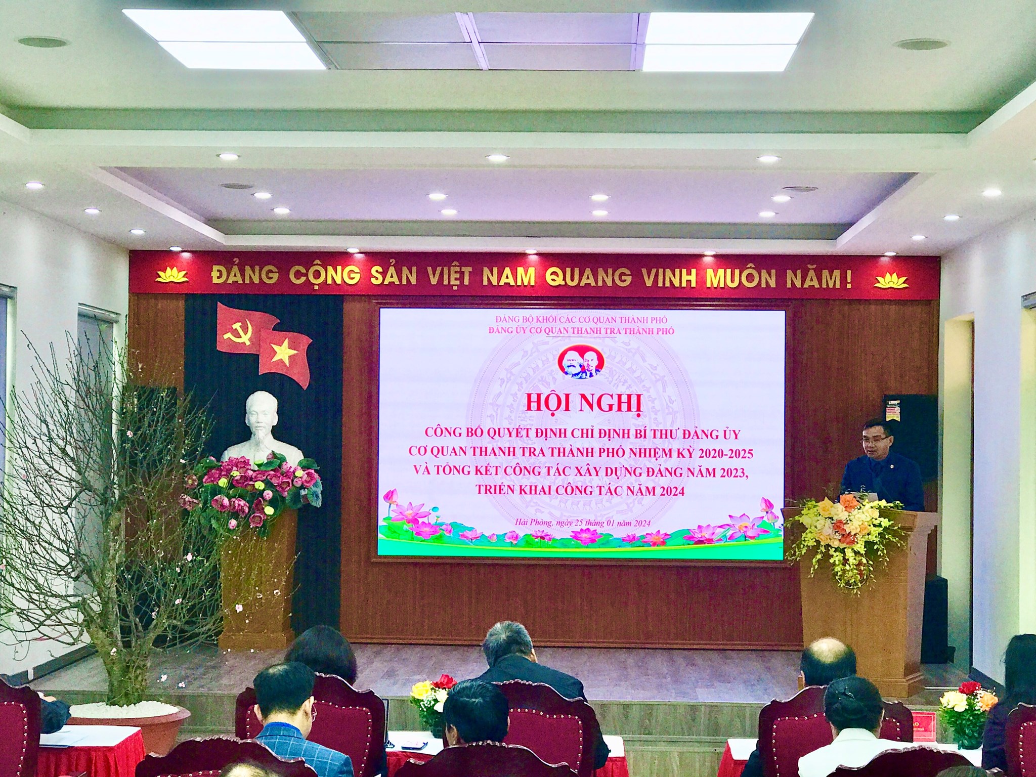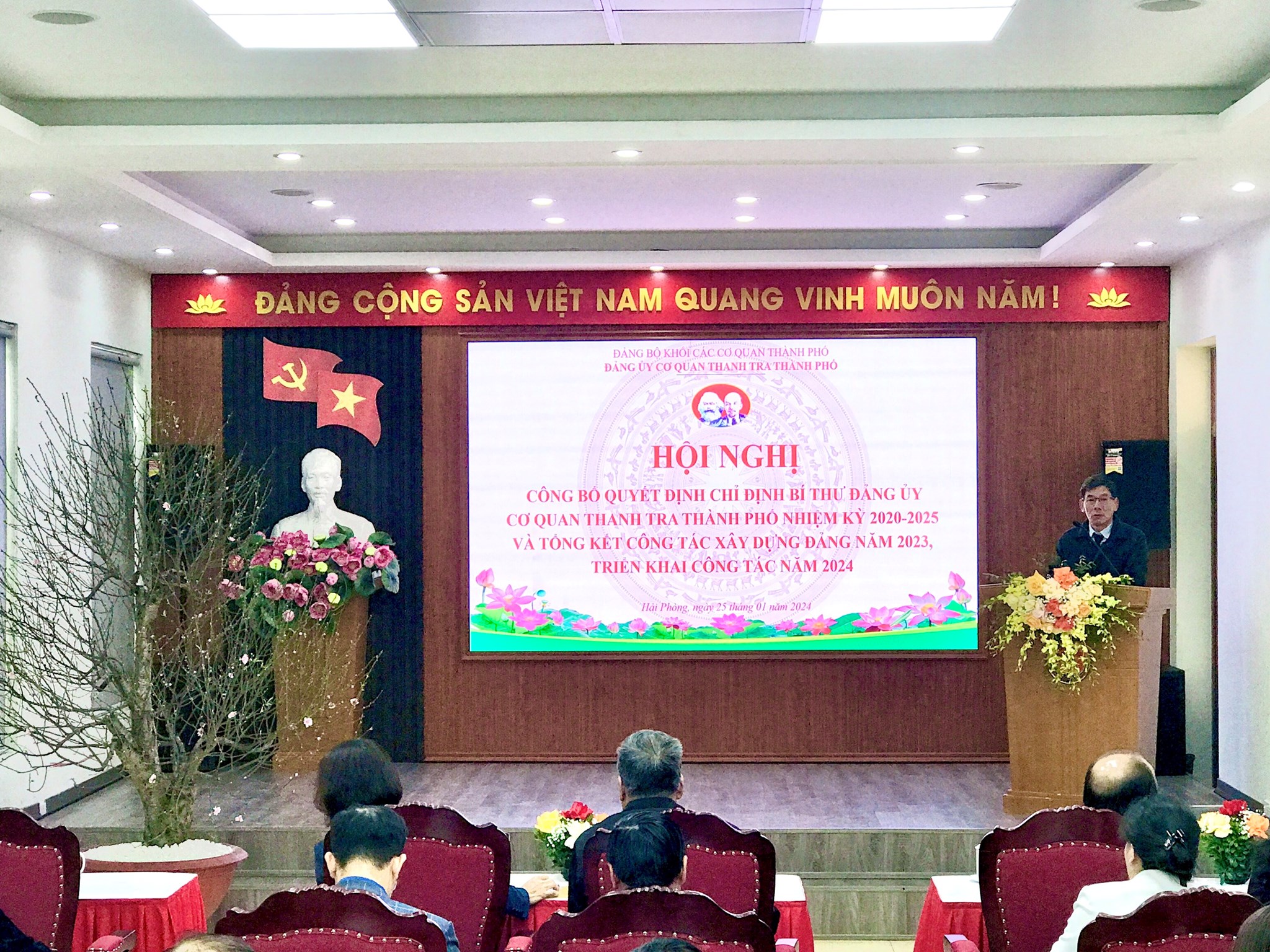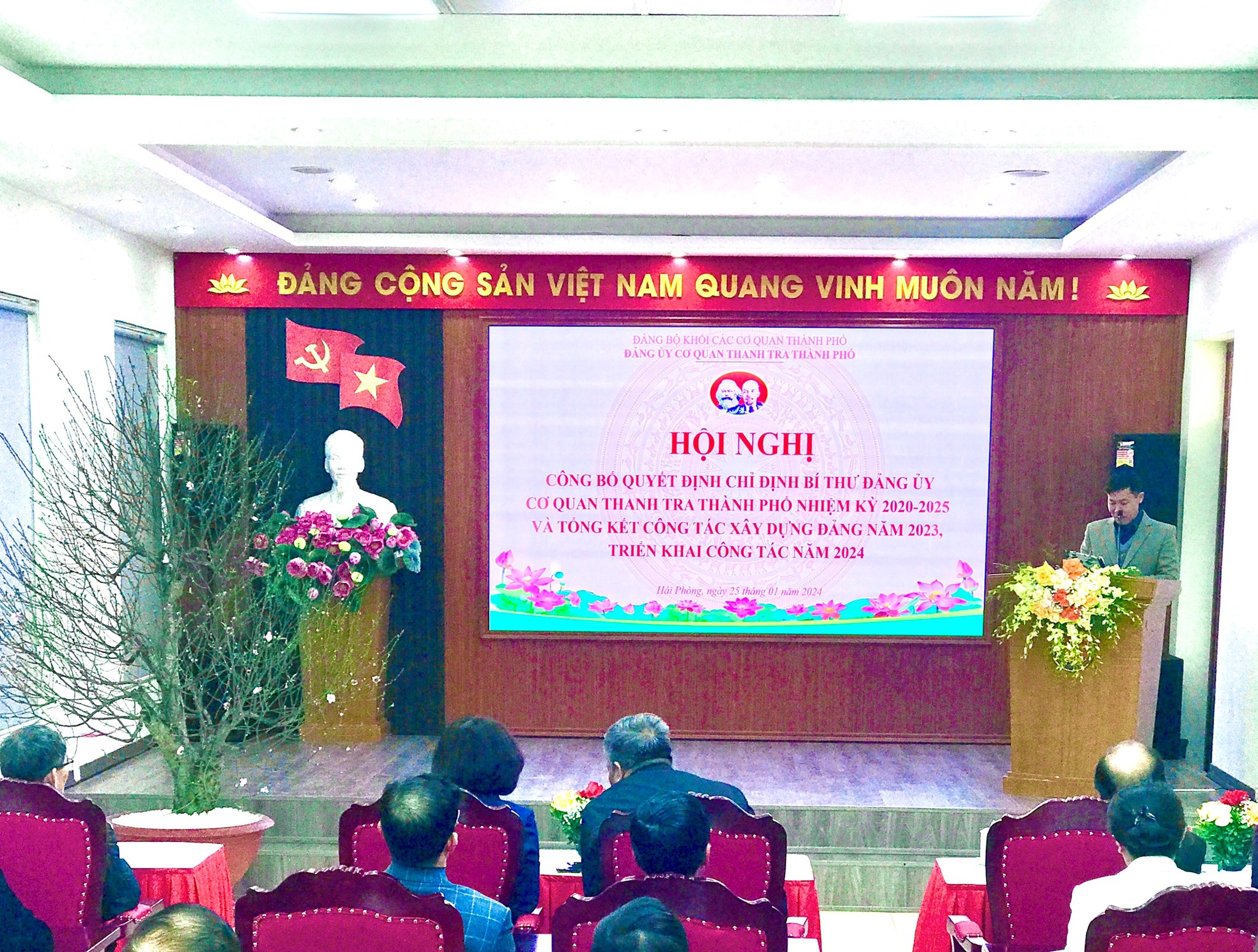 Sáng ngày 25/01/2024, Đảng bộ cơ quan Thanh tra thành phố đã tổ chức Hội nghị công bố Quyết định chỉ định Bí thư Đảng ủy cơ quan Thanh tra thành phố nhiệm kỳ 2020-2025 và tổng kết công tác xây dựng Đảng năm 2023 triển khai nhiệm vụ năm 2024.