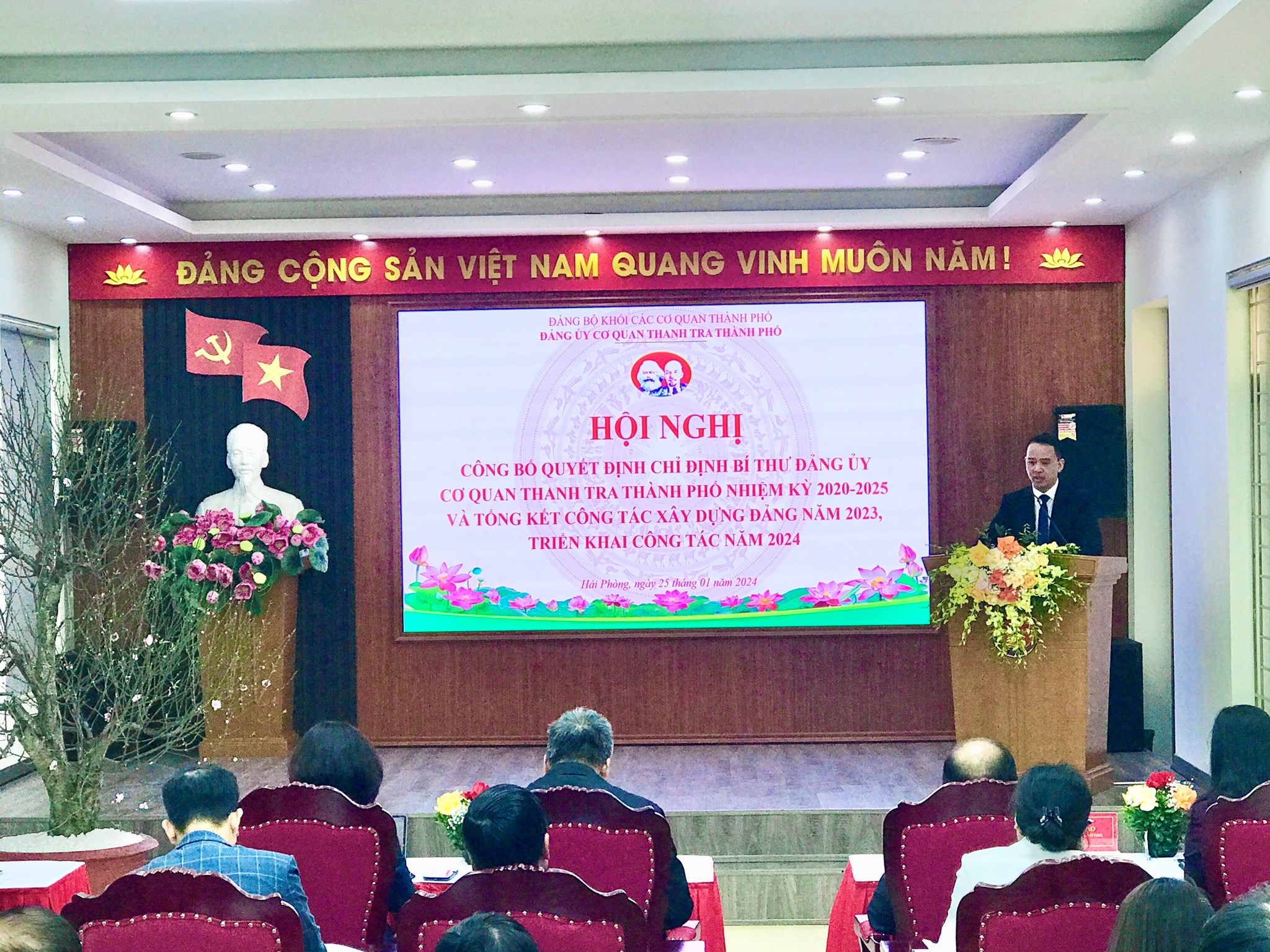 Thay mặt Ban Chấp hành Đảng bộ cơ quan Thanh tra thành phố, đồng chí Tô Xuân Hiến, Phó Bí thư Đảng ủy trình bày Báo cáo tổng kết công tác Đảng năm 2023, phương hướng nhiệm vụ năm 2024. Năm qua, Đảng ủy cơ quan Thanh tra thành phố đã phối hợp chặt chẽ với lãnh đạo cơ quan thực hiện tốt nhiệm vụ chính trị được giao; chấp hành nghiêm các quy định về pháp luật thanh tra; quy trình, quy chế đoàn thanh tra cũng như kỷ cương, kỷ luật trong ngành được tăng cường.