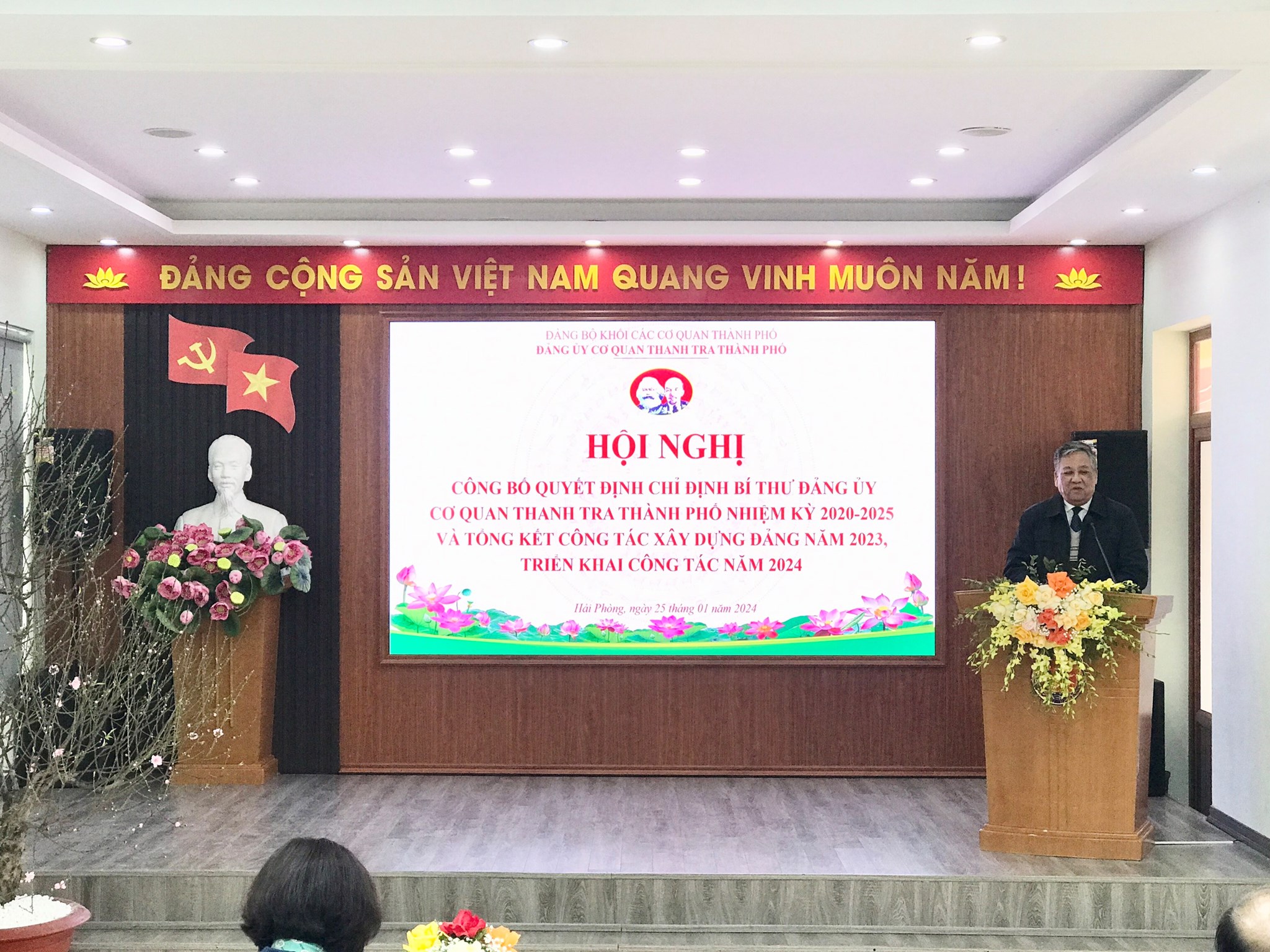 Phát biểu chỉ đạo tại Hội nghị, đồng chí Phạm Xuân Thanh- Ủy viên Thành ủy, Bí thư Đảng ủy Khối các cơ quan thành phố, đánh giá cao những kết quả mà Đảng bộ cơ quan Thanh tra thành phố đã triển khai và đạt kết quả rất tích cực ở tất cả các mặt công tác trong thời gian qua, trong đó phải kể đến việc Đảng ủy cơ quan Thanh tra thành phố đã tập trung làm tốt công tác xây dựng Đảng, góp phần thực hiện thắng lợi nhiệm vụ chính trị được giao. Đồng chí Bí thư Đảng ủy Khối các cơ quan thành phố cũng nhấn mạnh, Ban Chấp hành Đảng bộ, từng đồng chí đảng viên, cần tiếp tục phát huy kết quả đạt được, triển khai, hoàn thành nhiệm vụ, kế hoạch được cấp trên giao phó cũng như cần tổng kết, rút kinh nghiệm và tổ chức xây dựng kế hoạch nhiệm vụ cho năm 2024.