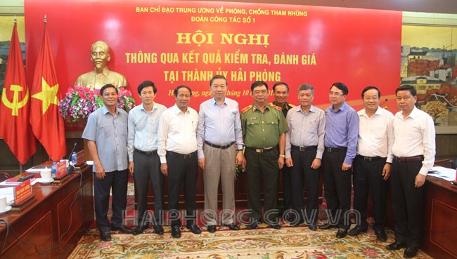 Thượng tướng Tô Lâm nhấn mạnh một số vấn đề, trong đó, Ban Thường vụ Thành ủy Hải Phòng đã quan tâm lãnh đạo, chỉ đạo công tác kiểm tra, giám sát về phòng, chống tham nhũng nói chung và cụ thể với việc xử lý thanh tra, kiểm tra, phát hiện xử lý các vụ việc nói riêng; qua kiểm tra, giám sát đã chấn chỉnh, khắc phục được nhiều sai phạm để phòng ngừa tham nhũng; những kiến nghị của Đoàn công tác số 2 của Ban Chỉ đạo Trung ương về phòng, chống tham nhũng đã được Thành ủy Hải Phòng triển khai thực hiện tốt, xử lý dứt điểm một số vụ việc. Những vấn đề còn tồn tại của thành phố Hải Phòng cũng là những tồn tại, vướng mắc chung tại nhiều địa phương, sau buổi kiểm tra, Đoàn sẽ có báo cáo với Ban Chỉ đạo Trung ương về phòng, chống tham nhũng để có xử lý chung cho toàn quốc.