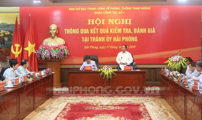 Đoàn Kiểm tra số 1 của Ban Chỉ đạo Trung ương về phòng, chống tham nhũng và lãnh đạo thành phố