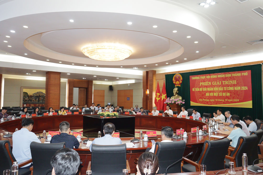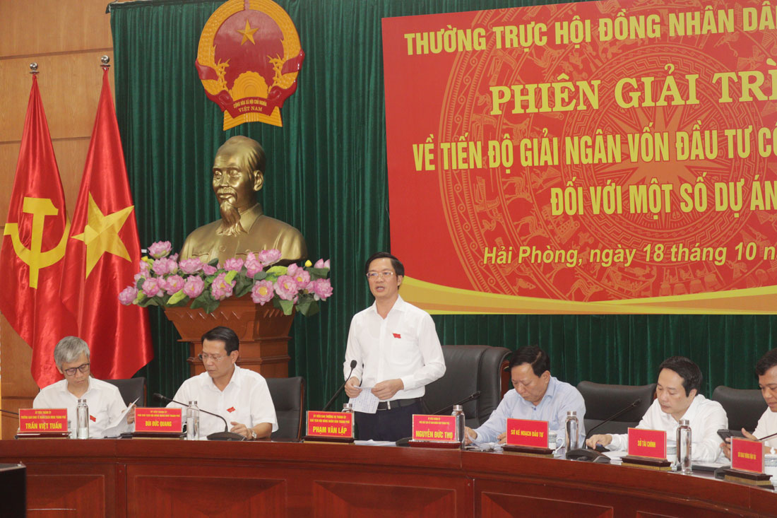 Tại phiên giải trình, Giám đốc Ban Quản lý dự án đầu tư xây dựng các công trình giao thông Hải Phòng đã báo cáo tiến độ giải ngân vốn đầu tư công tại một số dự án: Dự án đầu tư xây dựng, mở rộng tuyến đường ven biển đoạn qua địa bàn thành phố Hải Phòng; Dự án đầu tư xây dựng cầu Lại Xuân, cải tạo mở rộng đường tỉnh 352; Dự án đầu tư xây dựng cầu Nguyễn Trãi và chỉnh trang đô thị vùng phụ cận; Dự án đầu tư xây dựng cầu sông Hóa nối giữa huyện Vĩnh Bảo (thành phố Hải Phòng) và huyện Thái Thụy (tỉnh Thái Bình).